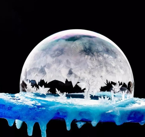 The world of snowflakes in the bubble is simply a magic crystal ball given by nature!