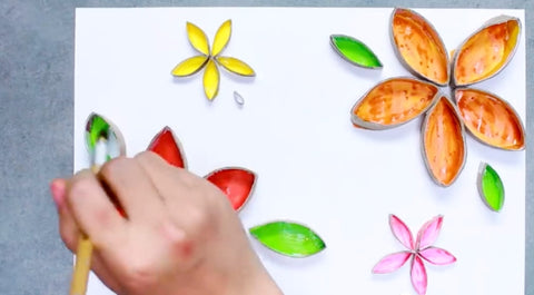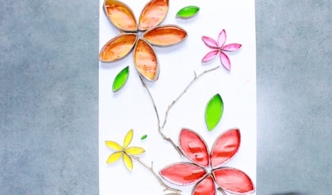 2. Then arrange the flower shape on the paper and fix it on the paper with glue.