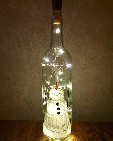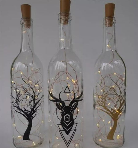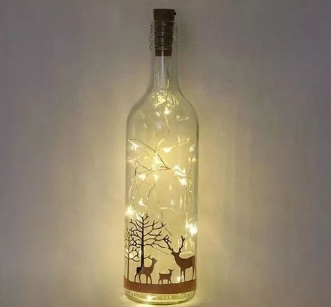 Buy some cork string lights and put them in the bottles to create a romantic atmosphere, which is more beautiful than the lights bought outside. They are more beautiful than the lights bought outside. You can search for these cork string lights online.
