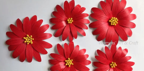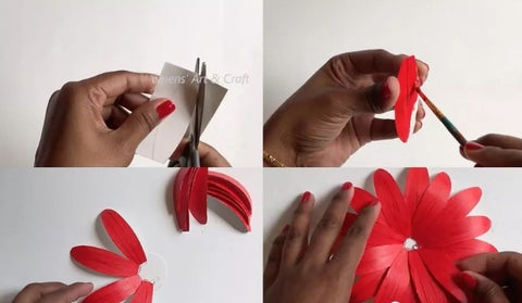 Step 1: Use white cardboard to cut out the shape of the petals and paint them with bright red.