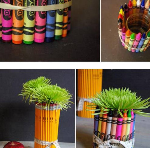 The sound of rustling writing on the blackboard, the sound of flipping through homework books, the joyful sound of small notes in the corner… everything is so close and so far. It’s the beginning of school again, but it seems to be an insignificant day, but the joy and sadness in my memory have long since turned into a faint sense of happiness, reminding me of my childhood memories. Use your favorite pencils and crayons from childhood to make this creative little vase.