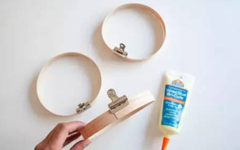 step1. Make a circle of wood pieces and glue them in place, secure them with clips, and wait for the glue to dry.