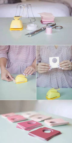 Pick a color you like. This time I chose some gradient colors with pink tones and used a hole punch to make them into a uniform shape. It will take about 40-60 sheets. The finished pieces of paper can be placed in different dishes.