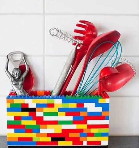 4. Are the Lego bricks at home gathering dust? Take them out and build a cooking utensil storage rack.