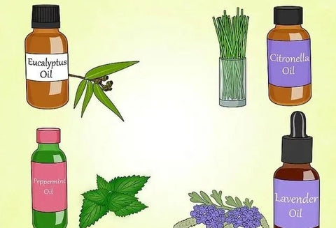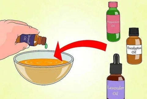 30 to 50 drops of essential oil. You can choose any combination from citronella oil, clove oil, lemongrass, and peppermint oil.