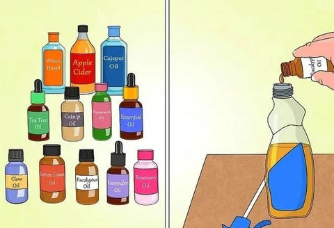 30 to 50 drops of essential oil. You can choose any combination from citronella oil, clove oil, lemongrass, and peppermint oil.