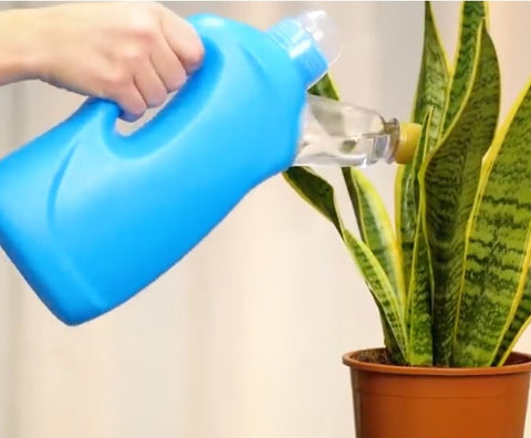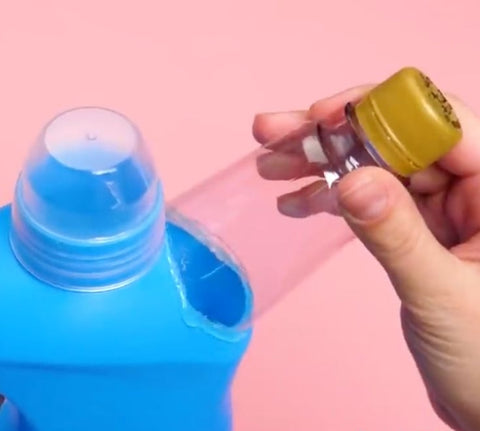 3. Connect the plastic bottle to the mouth of the laundry bottle.