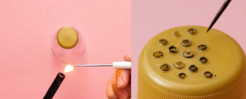1. Heat the needle and poke multiple small holes in the bottle cap.