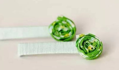 Green roses full of pastoral atmosphere are dotted in the hair. The rare natural beauty is unforgettable, as if they are the elves of the forest, flying in and out of the world. Share this set of handmade DIY pastoral fresh fabric rose hairpins. This fabric hairpin uses green as the main tone. It uses cloth strips to make origami effect roses. It is a simple and easy-to-learn handmade method. I believe everyone can learn it.