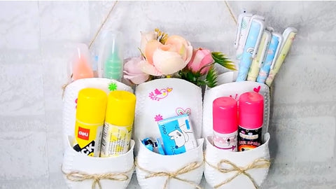 Materials and tools: shampoo bottles (3), twine, colored pens, markers, hot melt glue, scissors