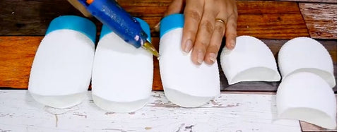 2. Squeeze hot melt glue at the position shown below and stick the cut bottom of the bottle at this position.