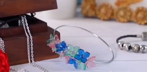 3. Then fix these heat shrinkable sheets on the bracelet with hot melt glue and complete.