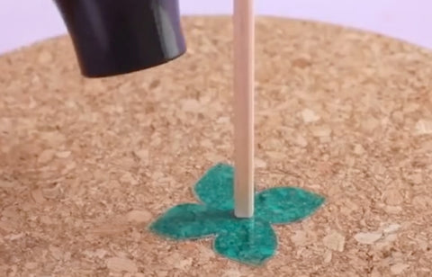 2. Fix the middle with a small wooden stick, and then heat it with a hot air gun. At this time, the heat shrinkable sheet will shrink.
