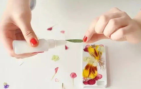 Place the phone case on wax paper and let it dry for 1-2 hours. Use a cotton swab dipped in acetone-containing nail polish remover to wipe the resin from the edge of the phone case. When the first layer of resin is dry, check to see if all the dried flowers are covered. If some are not covered, you can apply the second layer of resin according to the previous steps.