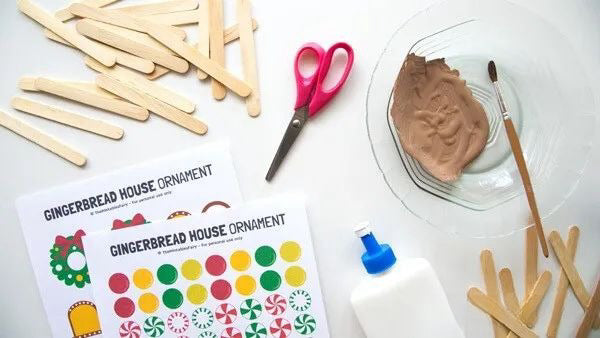 Materials: popsicle sticks, stickers, paint, brushes, utility knife, white latex, scissors